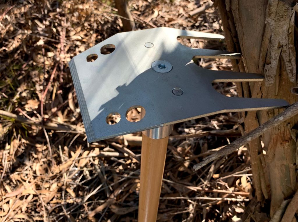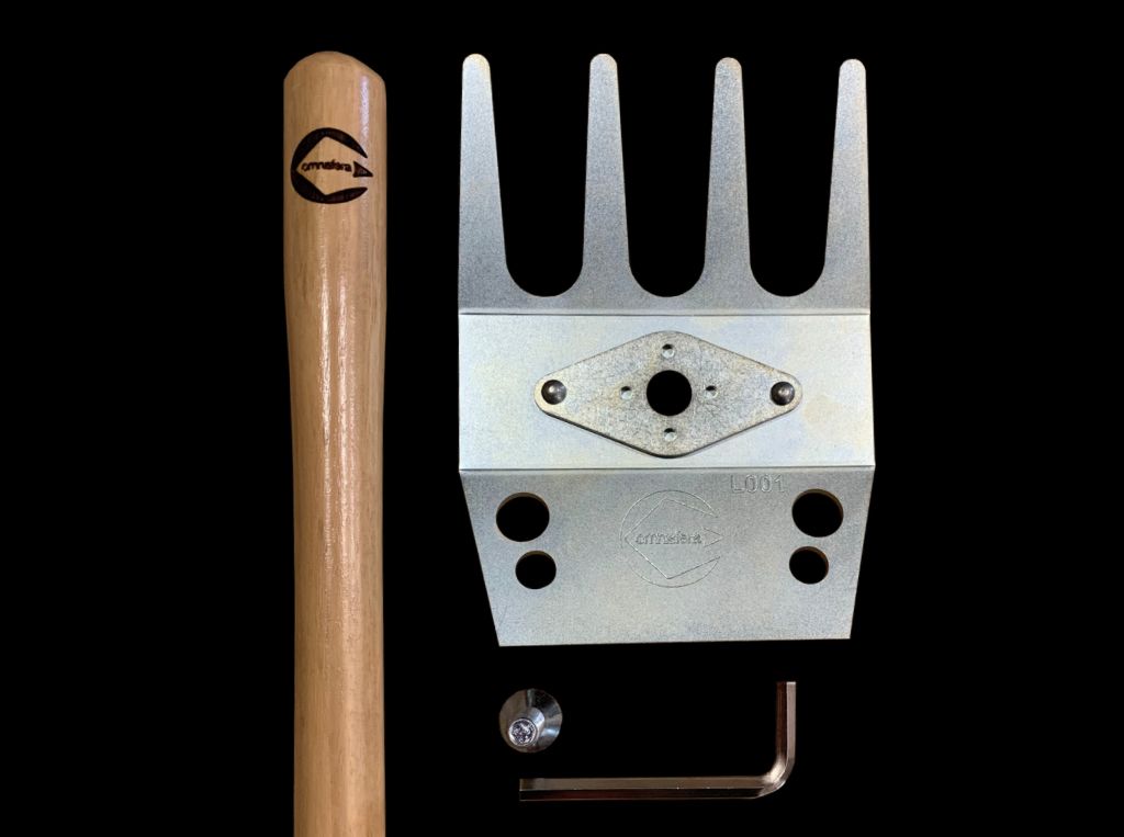 A cabeça/lâmina do MINI-MAC – MCLEOD é unida ao cabo universal através de um único parafuso, permitindo uma rápida montagem e desmontagem da cabeça, contribuindo para uma melhor rotatividade de cabeças, arrumação da ferramenta nos veículos de combate a incêndios e serviço, assim como tem a funcionalidade de que a ferramenta se mantenha em pé através da sua base direita.