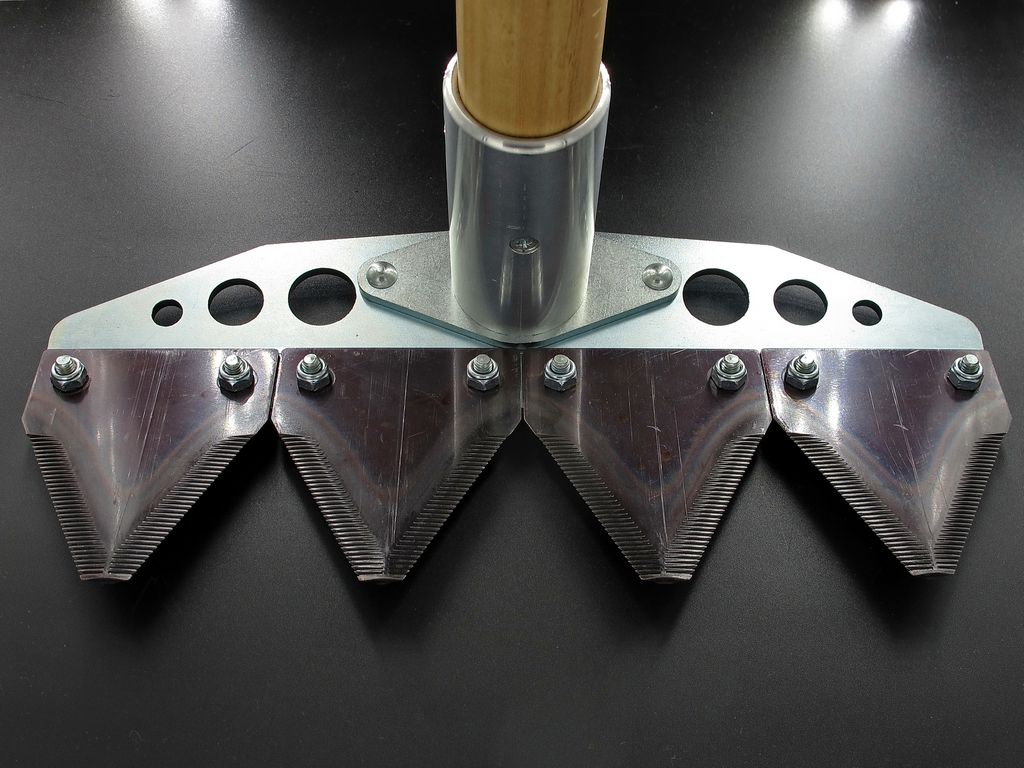 O RAKE – Ancinho Florestal é uma poderosa ferramenta de corte com um design agressivo, composto por quatro lâminas de corte de aço carbono temperado.