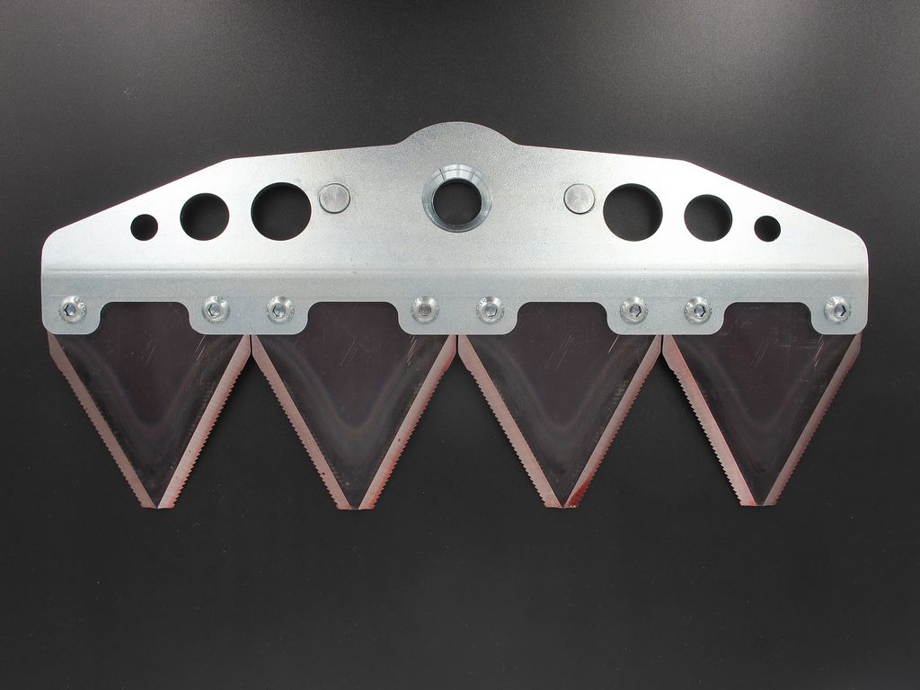 A sua cabeça é produzida em aço anti-desgaste de altas prestações com 400HB (Dureza Brinell), recortado a laser e com um tratamento anticorrosivo de zincagem.